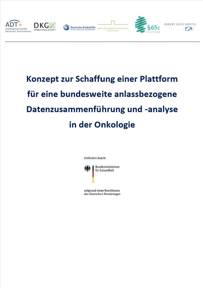 ![]() | Konzept zur Schaffung einer Plattform für eine bundesweite anlassbezogene Datenzusammenführung und ‑analyse in der Onkologie. Arbeitsgemeinschaft Deutscher Tumorzentren in Zusammenarbeit (gefördert durch das Bundesgesundheitsministerium), 2025 (Text) Lektorat |